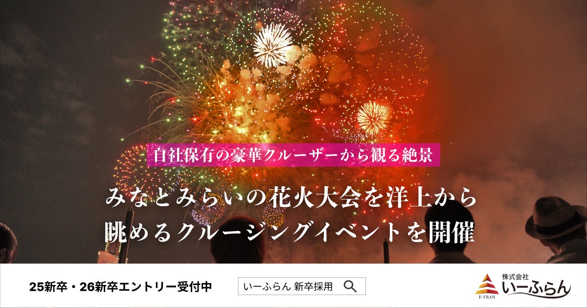 【いーふらん】福利厚生の一環として、自社所有クルーザーでみなとみらい花火大会を間近に観賞するクルージングイベントを開催
