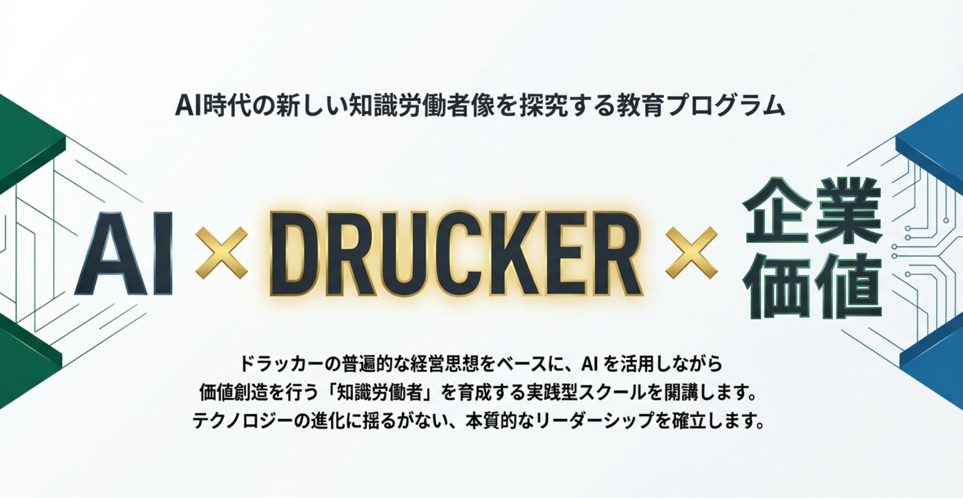 本スクールは、経営思想家ピーター・ドラッカーの思想をベースに、AIを活用しながら価値創造を行う「知識労働者」を育てることを目的とした実践型スクールです。