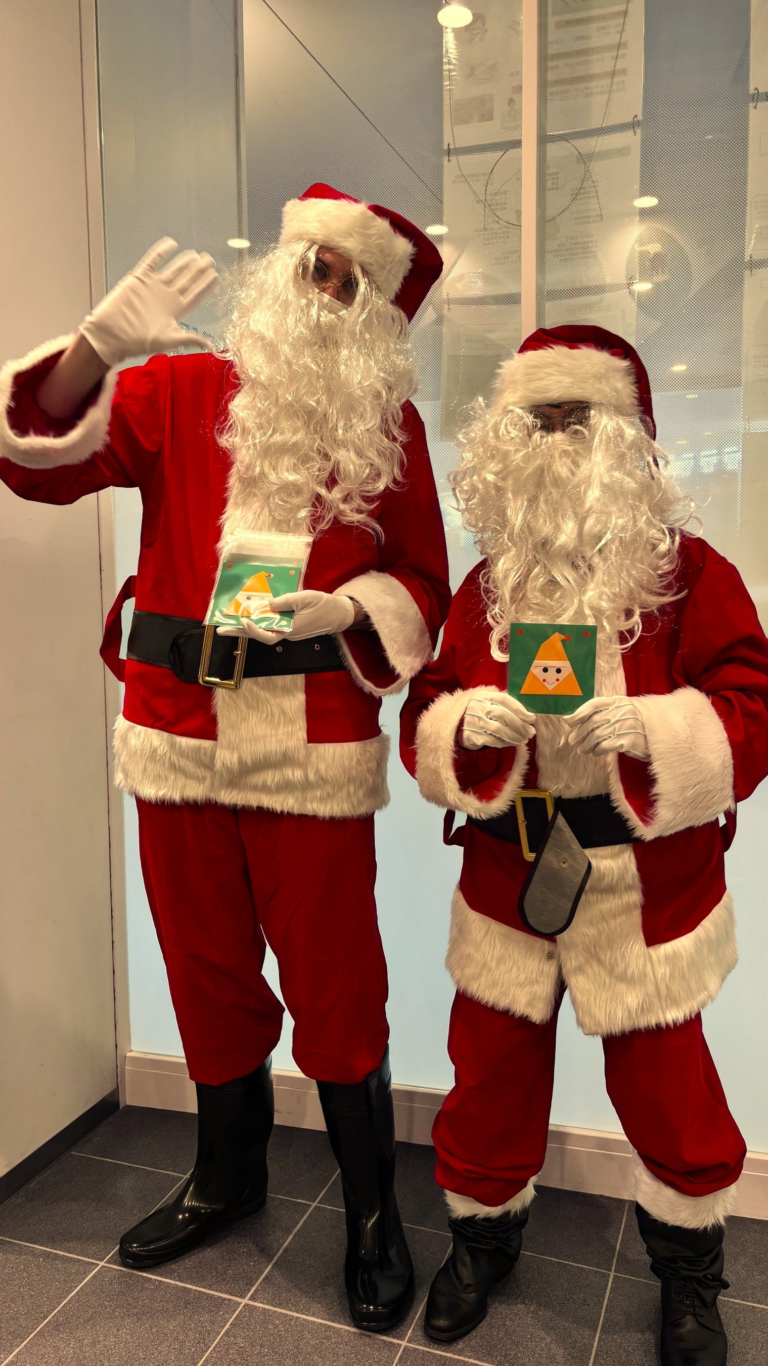 12月、クリスマスを前にしたある日。海外からやってきたサンタクロースが、DMHC・MIMARUのスタッフと一緒にドナルド・マクドナルド・ハウスの連携病院を訪れました。病院で過ごす子どもたち一人ひとりに、プレゼントや手作りのクリスマスカードがサンタクロースから手渡され、短い時間ではありましたが、写真を撮ったり、言葉を交わしたりしながら、その場に集まった家族と、ささやかなクリスマスのひとときを共有しました。