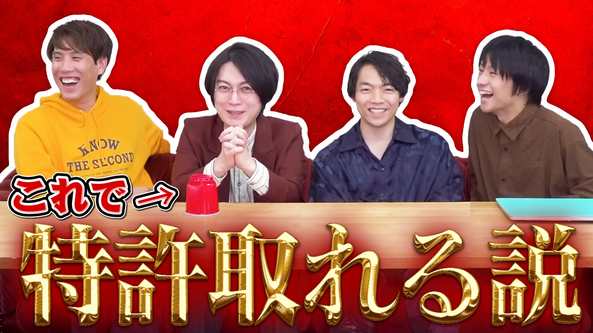 産業財産権(特許権・実用新案権・意匠権・商標権)にまつわるアイデアを考え、そのアイデアで権利が取得できそうかどうか、特許庁職員が特別に判定するという企画を、QuizKnockのメンバーに挑戦していただきました。