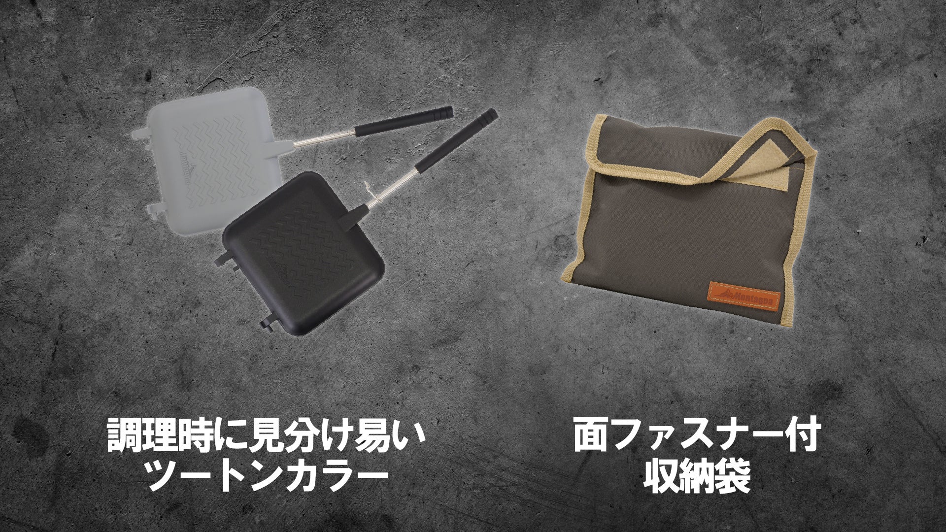 2022年9月12日に発売した前作「ストレージホットパン」の「分解収納構造」を継いで、収納サイズは「食パン」サイズ。ファミリーキャンプや家庭でも使いやすいサイズで焼き面も広く、ホットサンドメーカー&フライパンとしての機能性を存分に発揮できます。