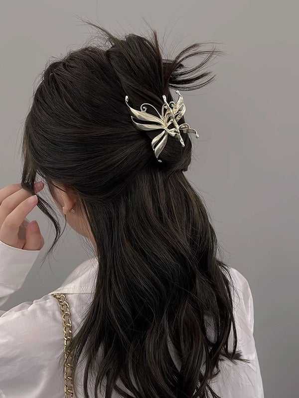 商品名:1個 エレガント 金属 蝶,ミディアムサイズ フレンチヘアクリップ