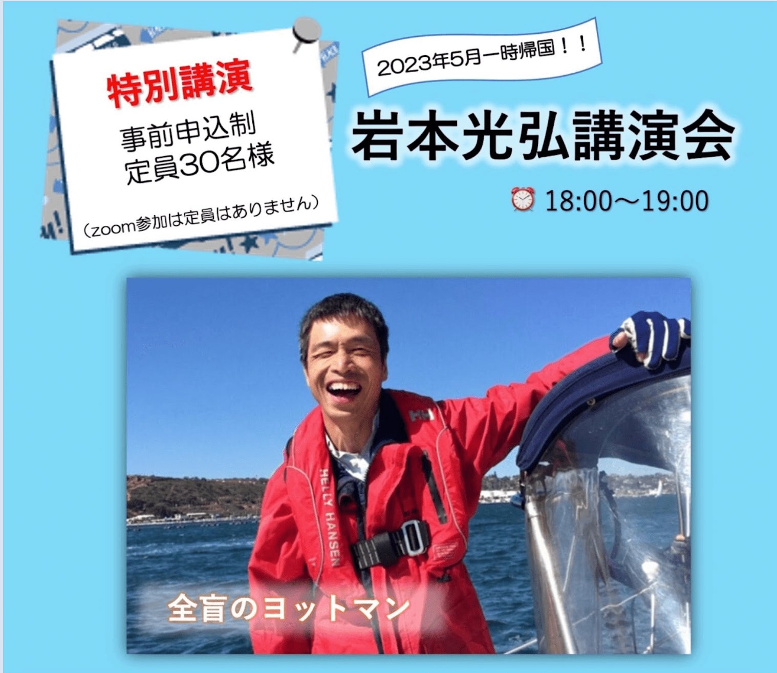 【FOEX】全盲海洋冒険家がアメリカから来日!岩本光弘講演会 5月30日(火) 開催のお知らせ(対面イベント)