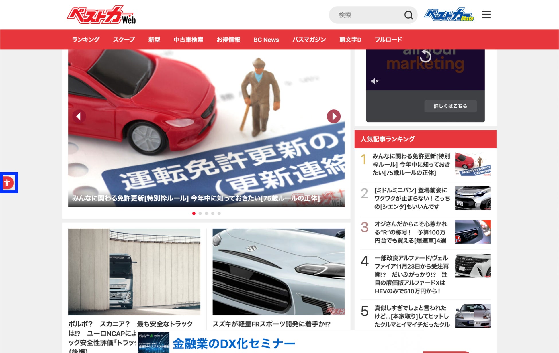 株式会社Kiva(本社:東京都中央区、代表取締役社長:野尻 航太、以下 Kiva)は、株式会社講談社ビーシー(本社:東京都文京区、代表取締役社長:出樋 一親、以下 講談社ビーシー)が運営するWeb媒体「ベストカーWeb」に、ウェブアクセシビリティツール「ユニウェブ」が導入されたことをお知らせいたします。