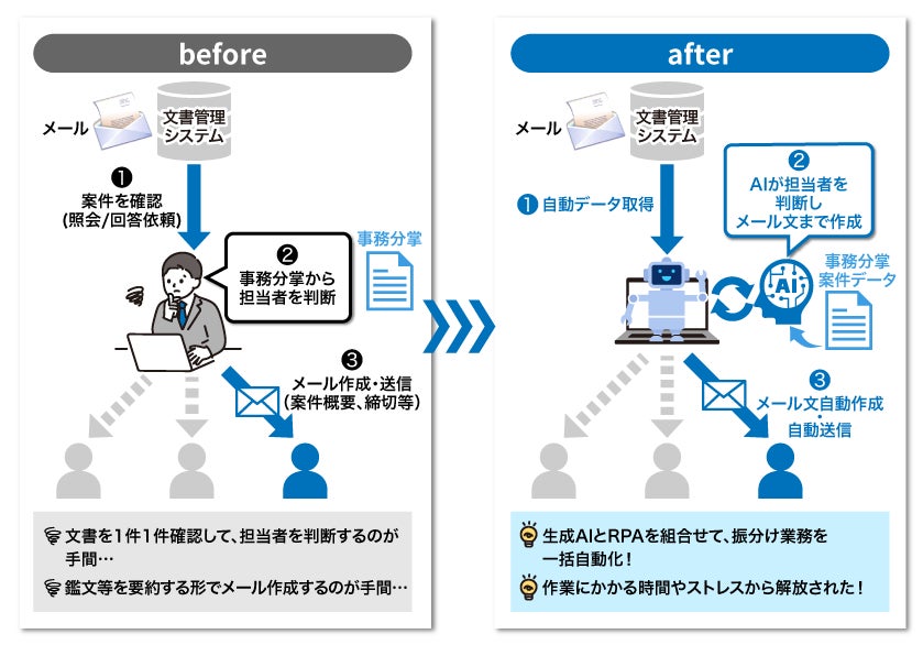 <事例② 案件振分け事務:RPAと生成AIの組合せにより、一気通貫で自動化>