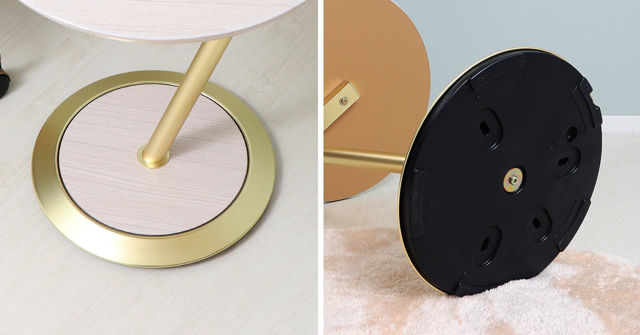 テーブルより台座のほうが小さいスタイリッシュなデザインなので、安定感が気になるところですが、台座にはおもりが付いており、転倒しにくい設計です。