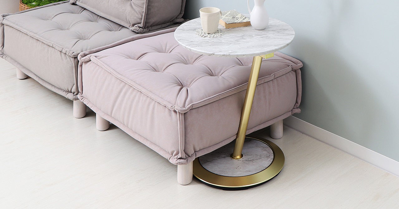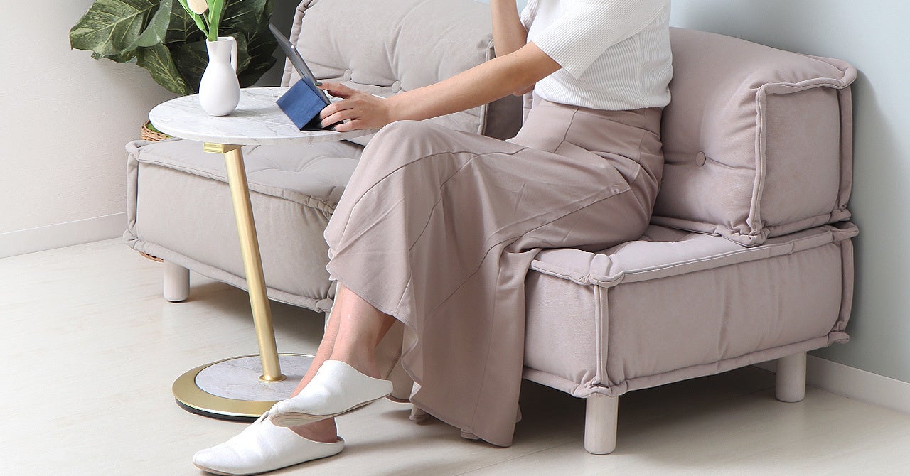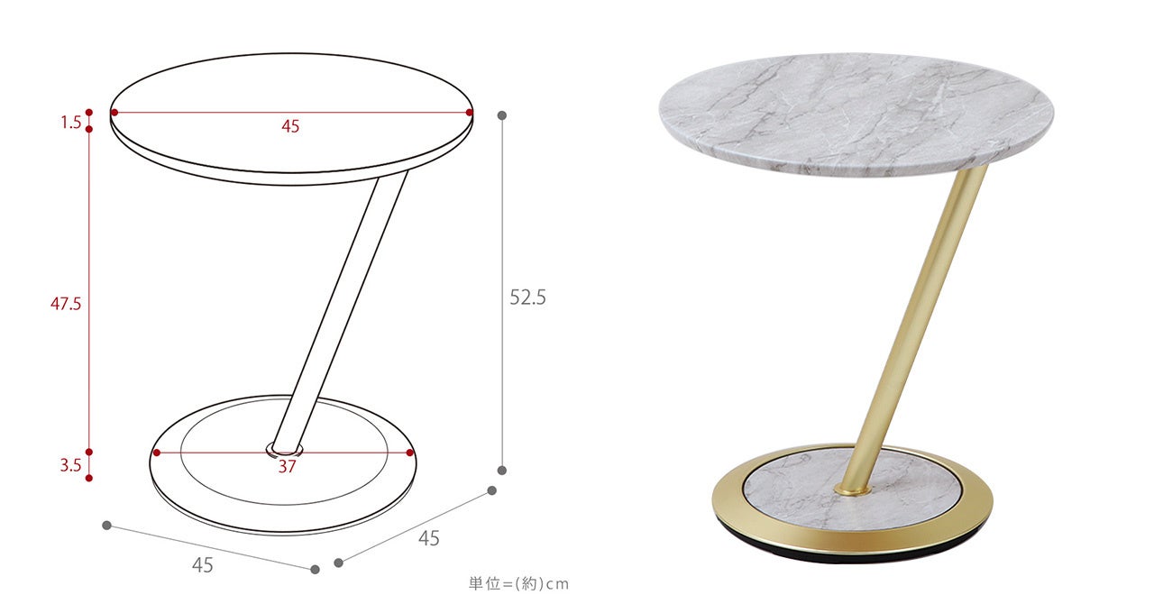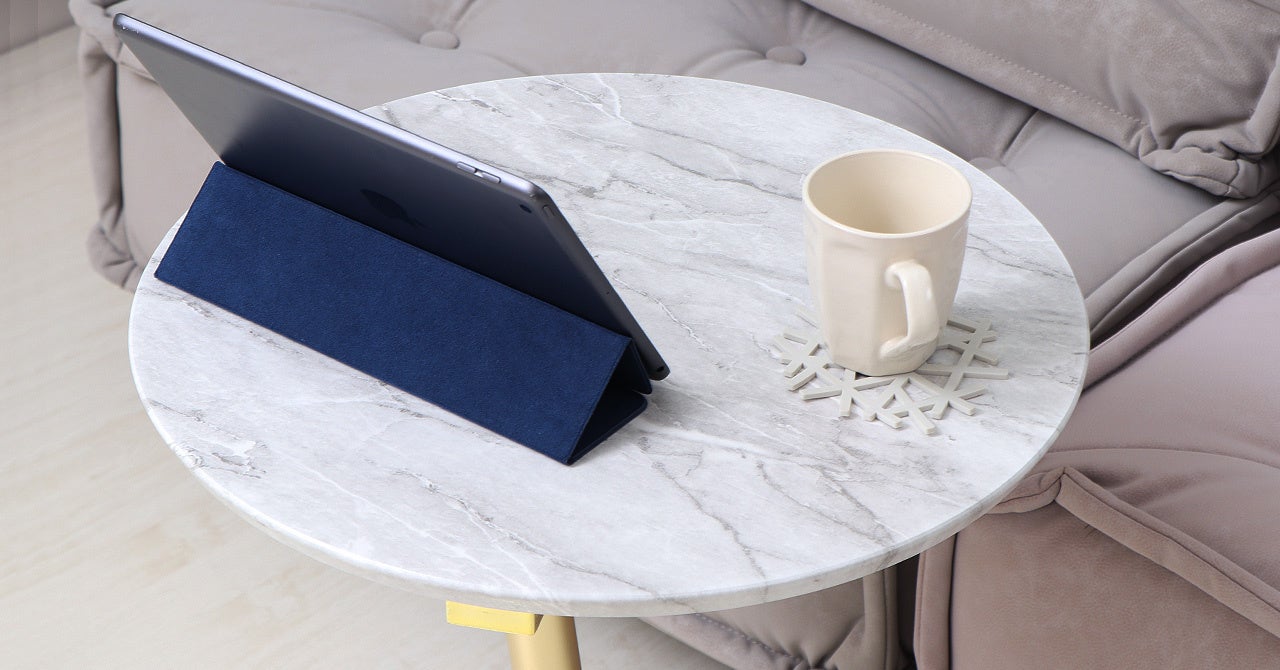 天板の広さは直径45cmあり、タブレットやノートPCなども置けるサイズ。天板高は52.5cmと一般的なソファーテーブルよりも15cmほど高いので、ソファーに座りながら動画を見たりなどに、ぴったりなテーブルです。