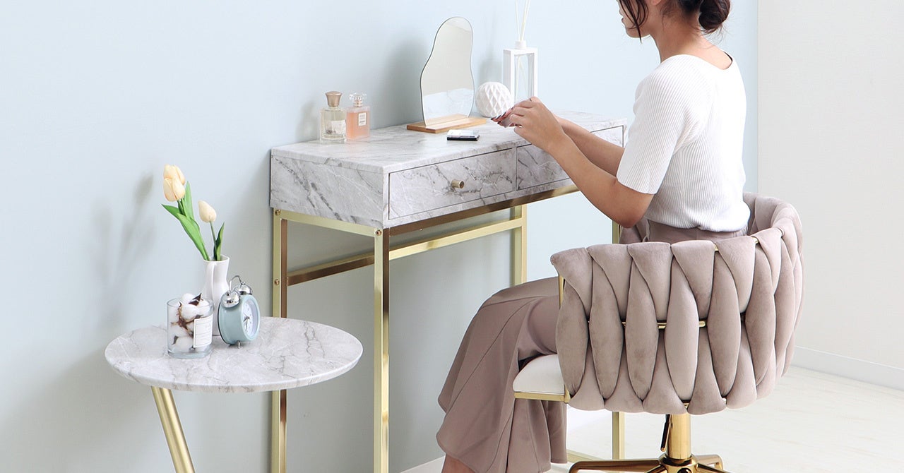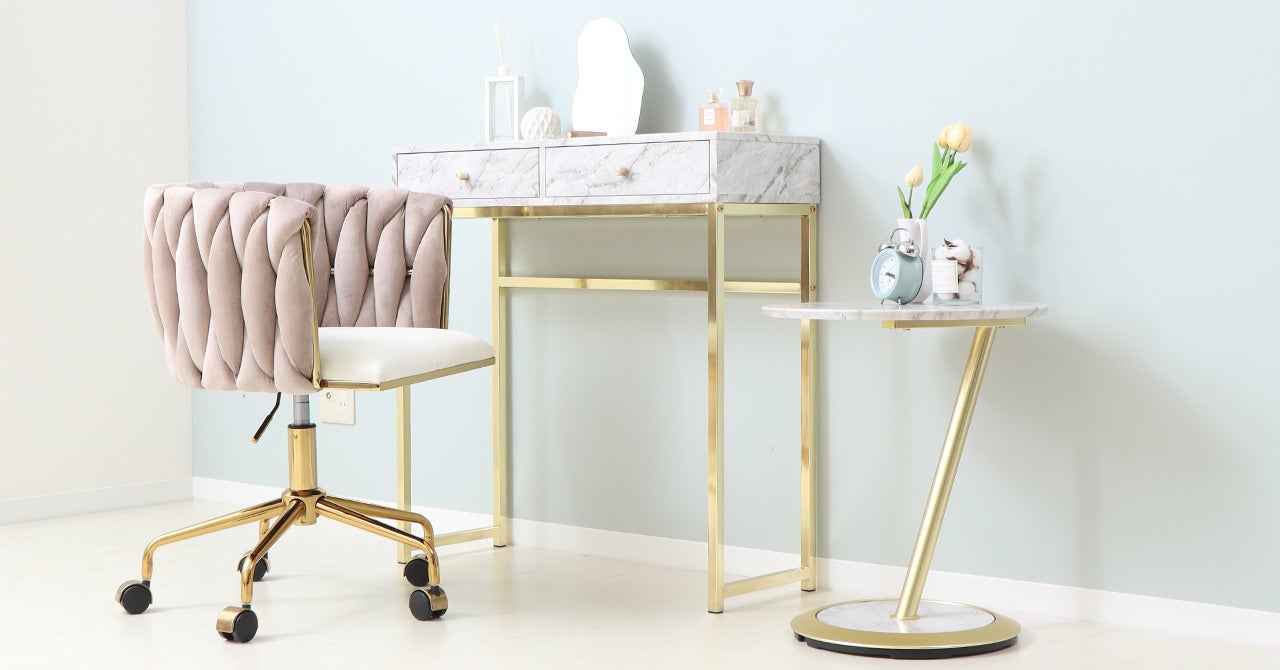 テーブルは大理石柄と木目柄があり、ゴールド脚との組み合わせはどちらも高級感があり上品な印象。
