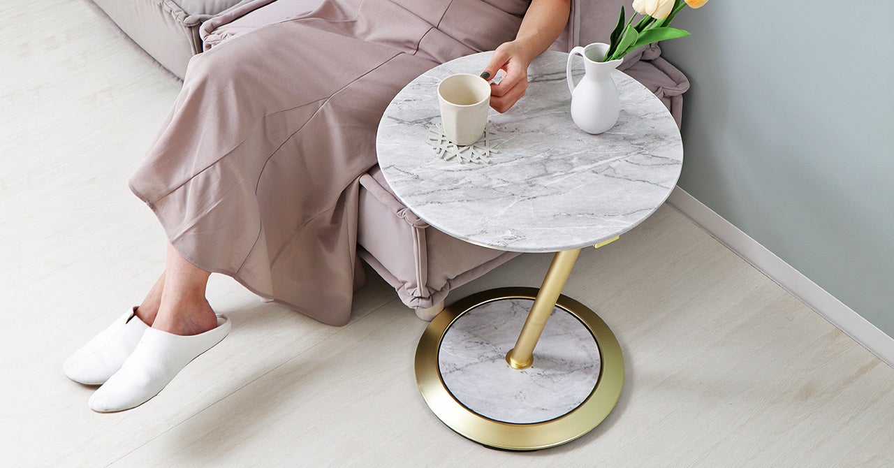 大理石柄と木目柄があり、ゴールド脚との組み合わせはどちらも高級感があり上品な印象。