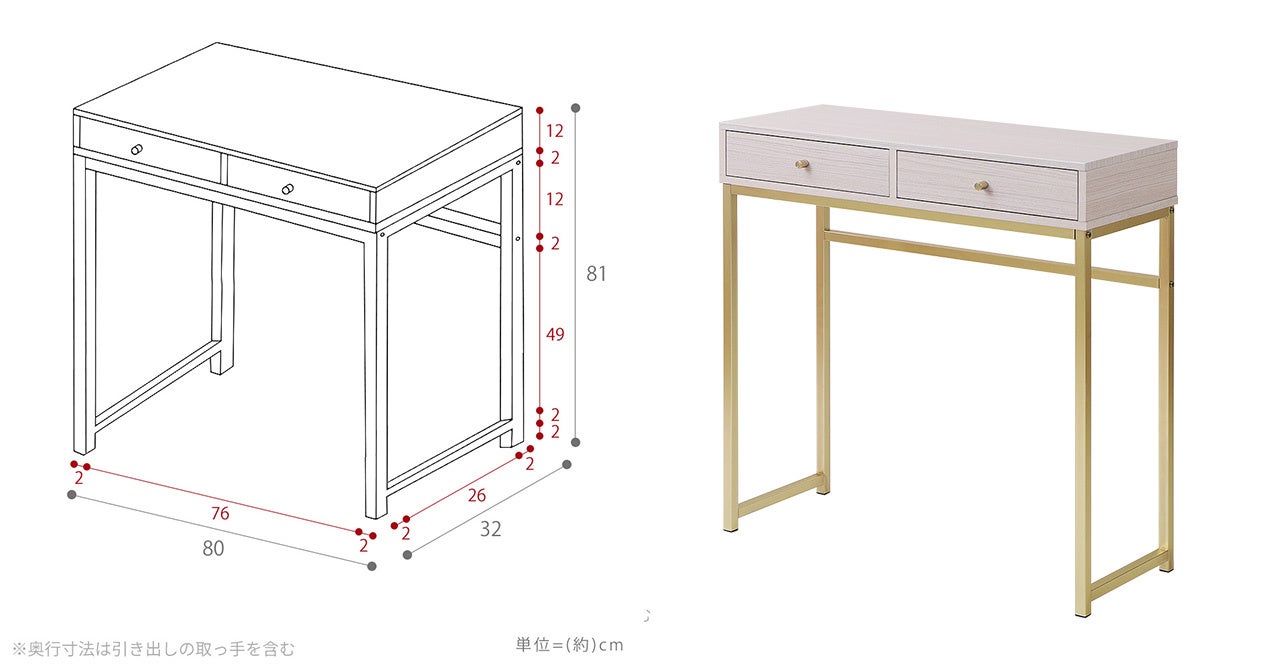 サ イ ズ :約幅80×奥行32×高さ81cm(引き出しの取っ手を含む)