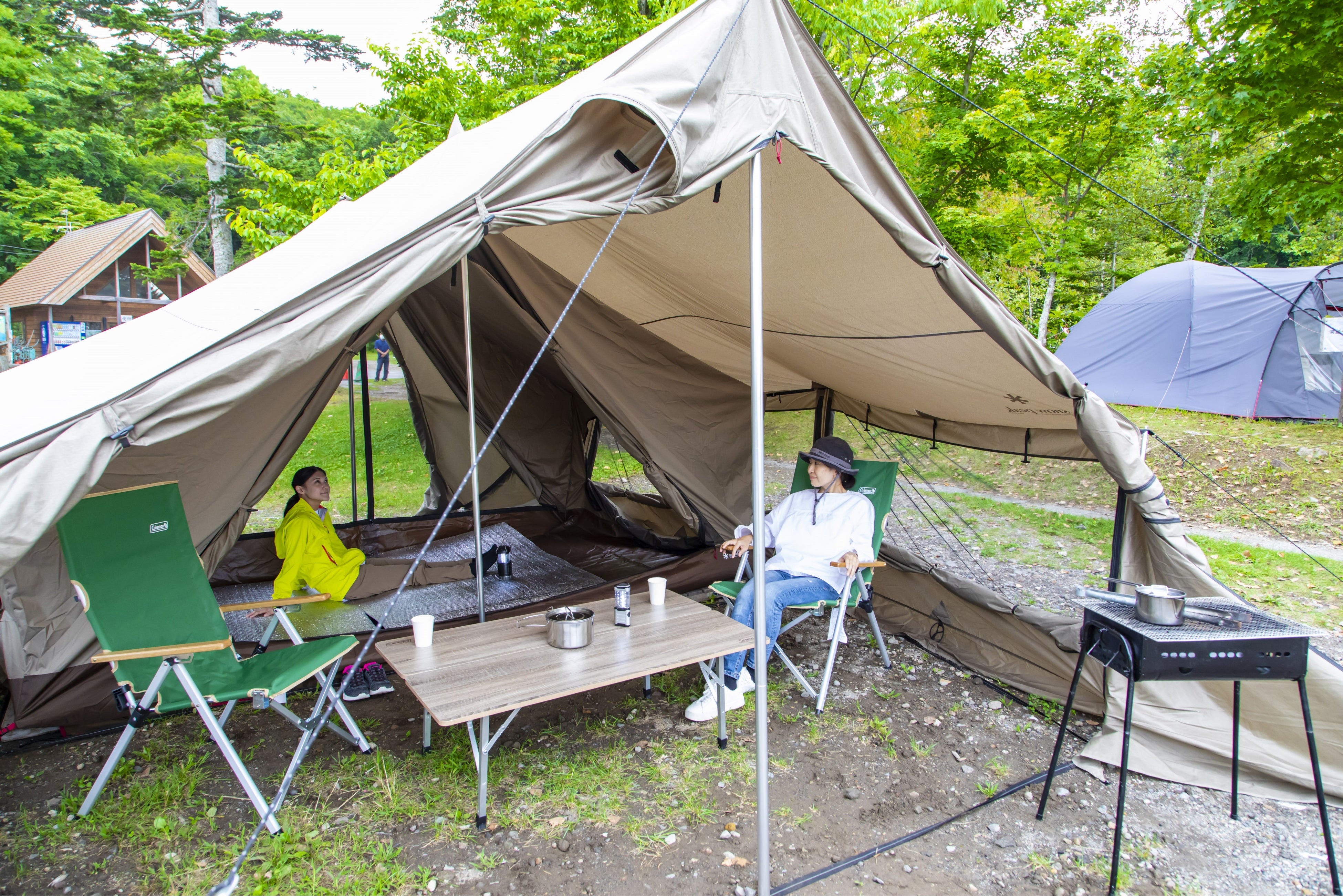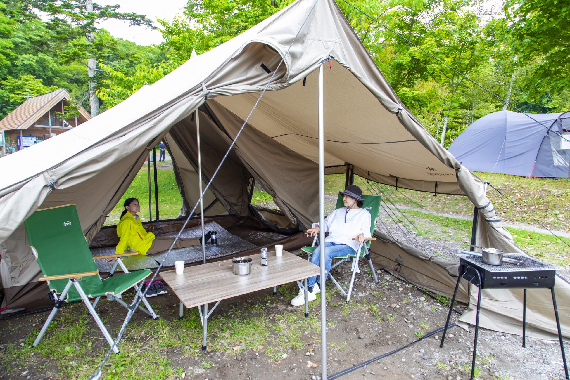 恵庭岳(えにわだけ)を望む抜群のロケーションでキャンプ