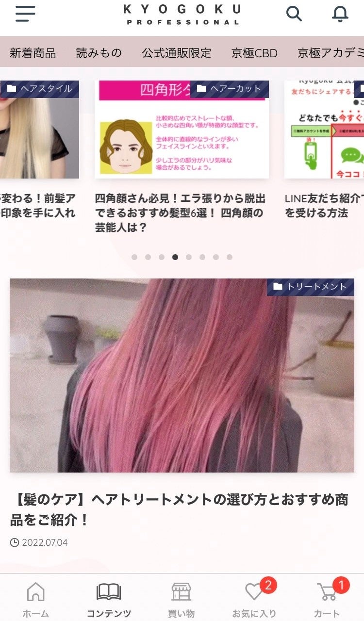 アンダーバーの「コンテンツ」を開いていただくと、ヘアスタイルのアドバイスや正しいヘアケア方法などもご覧いただけます!