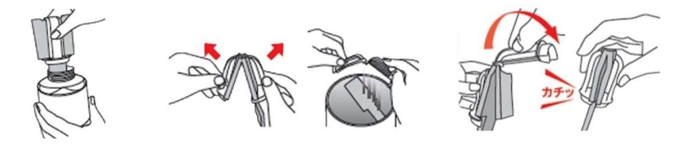 1. 本体キャップを外し、ホルダーを持ち、使用済み消臭フィルターを抜く