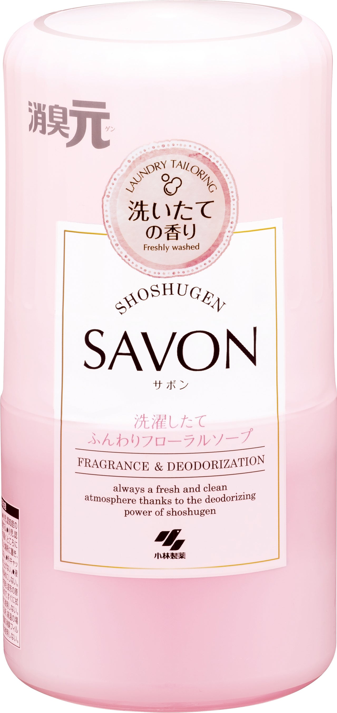 小林製薬の芳香・消臭剤ブランド『消臭元』は、お部屋用やトイレ用など使用場所別にラインナップを取りそろえてまいりましたが、今回新しく発売する「消臭元SAVON」は、マルチ消臭処方を採用しているため場所を問わずに使用できます。幅広い世代に人気があるソープ系で、洗いたての気持ちいい香りを再現しているため、家族で過ごす空間にも最適です。