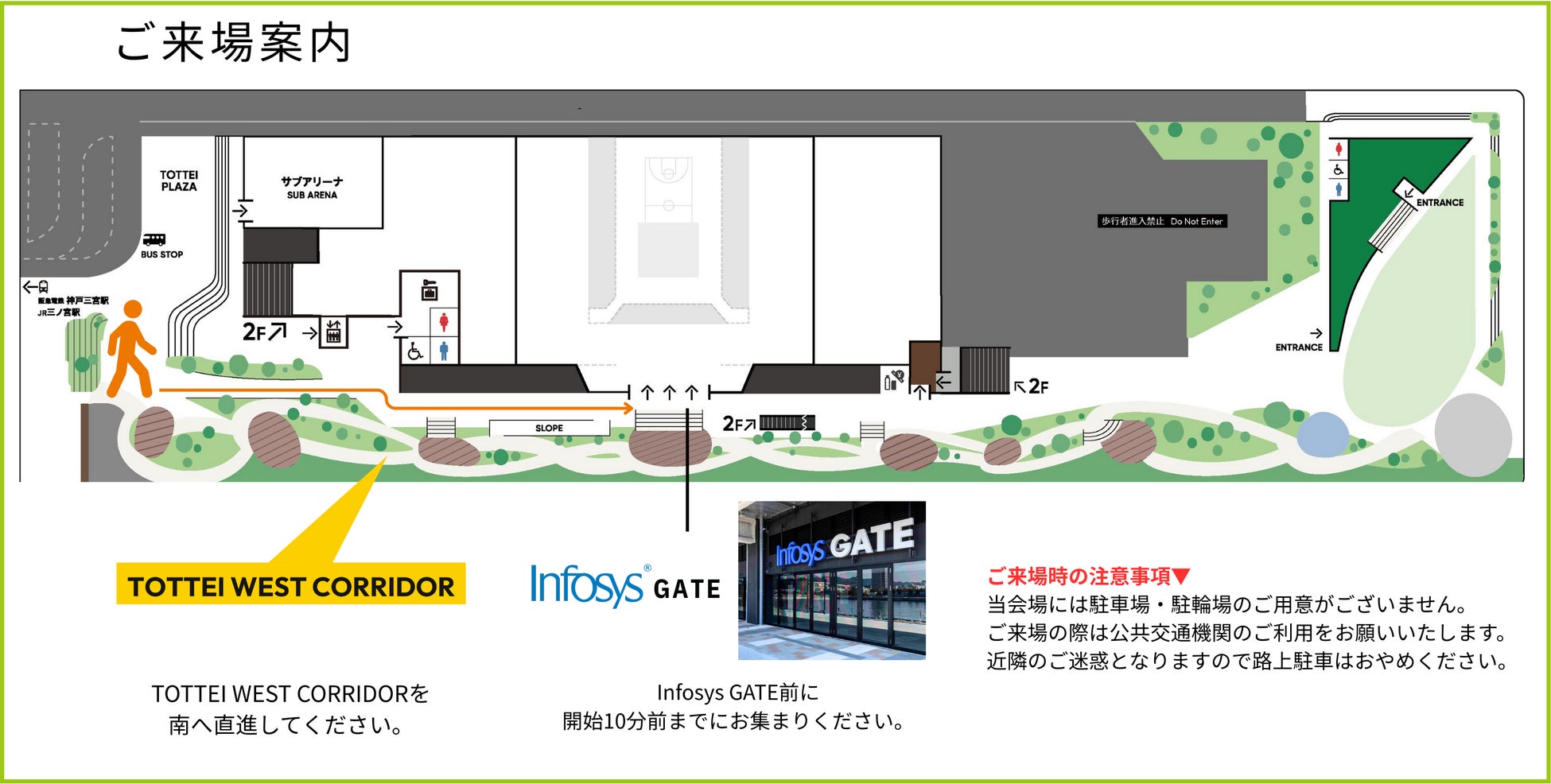 ロケーションは主要ターミナルの三宮駅から徒歩18分、神戸空港や東海道・山陽新幹線新神戸駅や、西日本最大級のバスターミナル、四国・九州との海路を結ぶフェリーターミナルからもアクセスしやすいエリアに位置します。日常的にご利用いただけるレストランゾーンやアリーナ南側には六甲山~神戸港をパノラマビューで見渡すことができるシンボリックな「TOTTEI PARK」とあわせて、365日お楽しみいただけるおでかけスポットです。