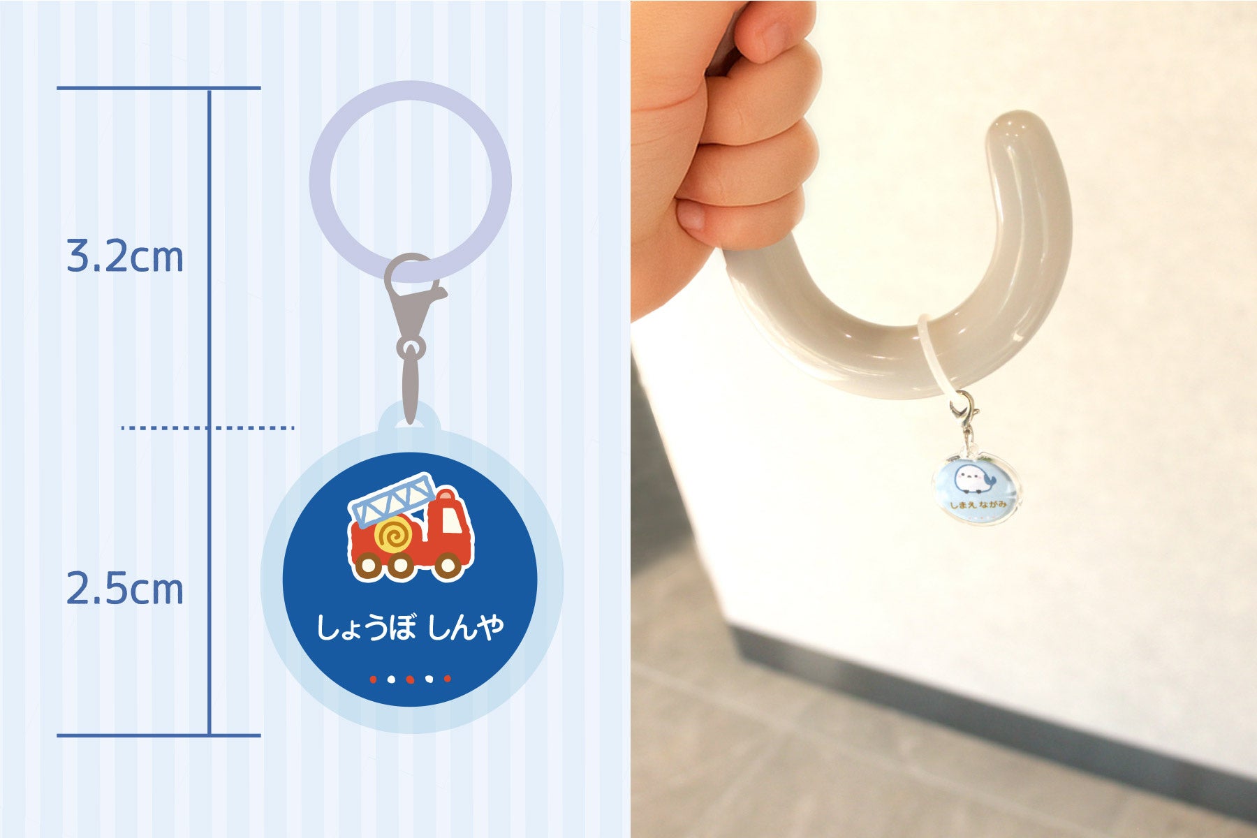 子ども用の傘に合うよう、当店で従来取り扱っているキーホルダーより小さなサイズを採用。傘の柄のどの部分につけても邪魔になりにくい大きさにこだわっています。