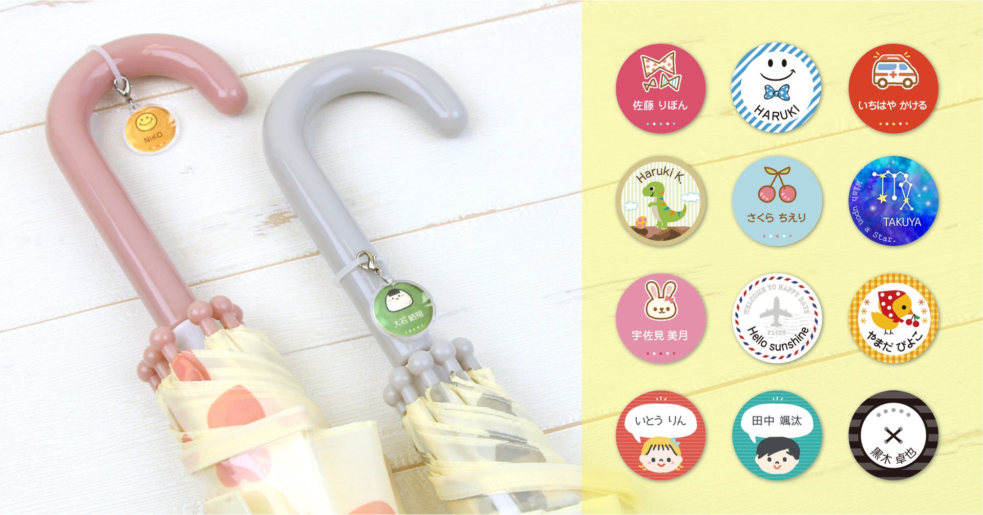 その中でも、子どもの傘は忘れたり取り違いが多く、なくなりがち。また「名前を書いても消える」「子どもたちの傘は似たものが多くて区別しづらい」、そんな保護者さまの声から、“お名前入り”傘チャームが生まれました。