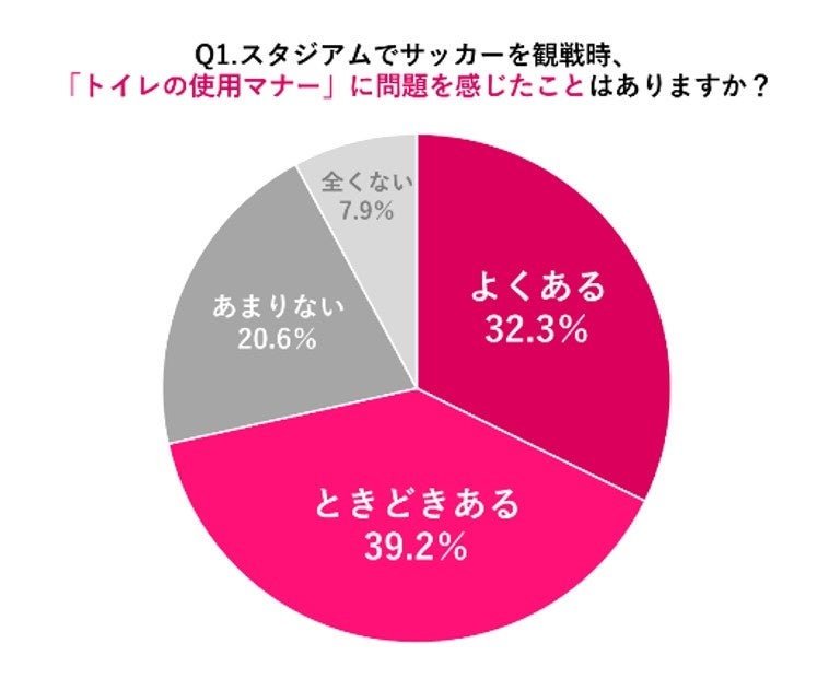 Q1.スタジアムでサッカーを観戦時、「トイレの使用マナー」に問題を感じたことはありますか?