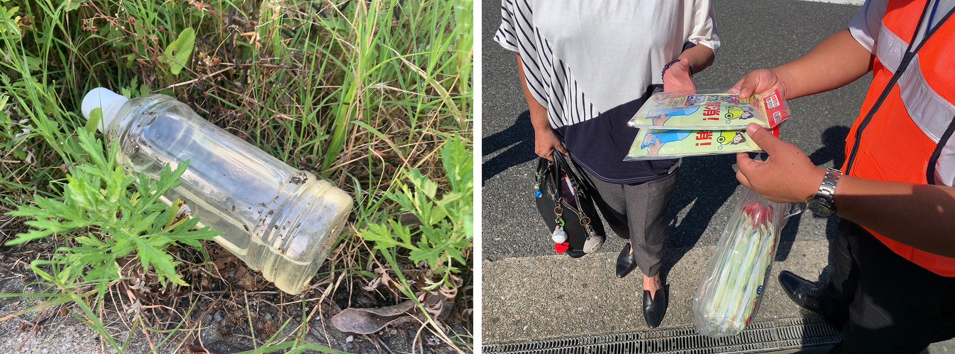 高速道路付近で、一部のドライバーがトイレに行くのが面倒である・渋滞などを理由にペットボトルに尿を排泄し、道路脇にポイ捨てされている状況が近年問題となっています。そこでサンコーの「緊急ミニトイレ」を和歌山県トラック協会様に寄付したり、SAで一般配布する活動を行いました。