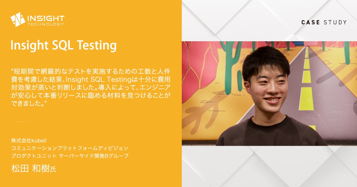 株式会社インサイトテクノロジー(本社所在地:東京都渋谷区、代表取締役社長 CEO:森田 俊哉、以下:インサイトテクノロジー)は、株式会社kubell(本社所在地:東京都港区、代表取締役CEO:山本 正喜、以下、kubell)が提供する日本最大級のビジネスチャット「Chatwork」(導入社数95.3万社以上*)の大規模データベース移行プロジェクトにおいて、SQLテストソフトウェア「Insight SQL Testing」が採用され、短期間での安全かつ確実なバージョンアップに貢献したことをお知らせします。