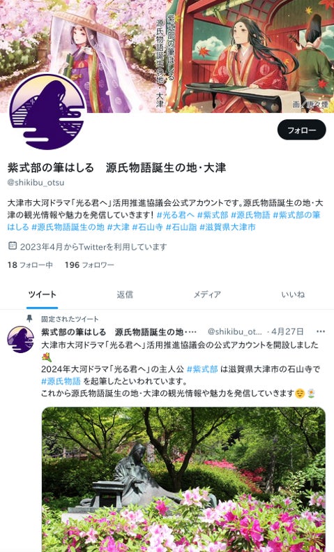 アカウント名:紫式部の筆はしる 源氏物語誕生の地・大津