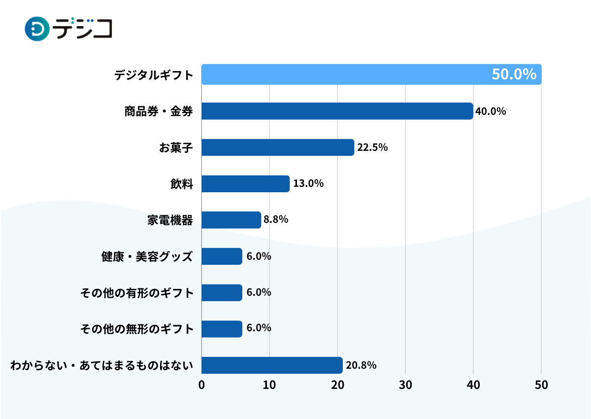 反響のよかったギフトとして、「デジタルギフト」の回答が50.0%と最も多い結果に