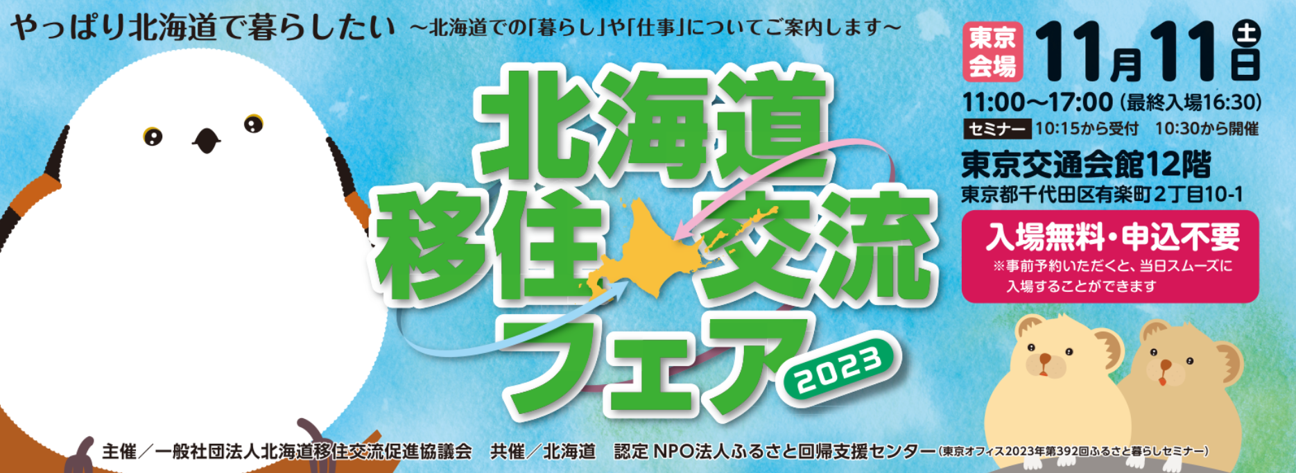 11月11日土曜日、移住イベント「北海道移住・交流フェアin東京」を東京交通会館にて開催します!