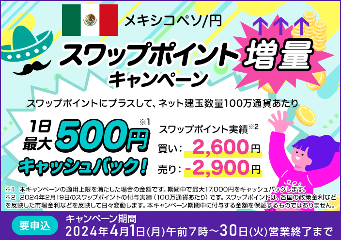 【セントラル短資FX】メキシコペソ/円スワップポイント増量キャンペーンのお知らせ