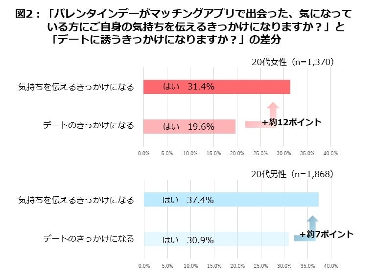 「バレンタインデーがデートのきっかけになる」のは女性で約2割、男性で約3割にとどまる