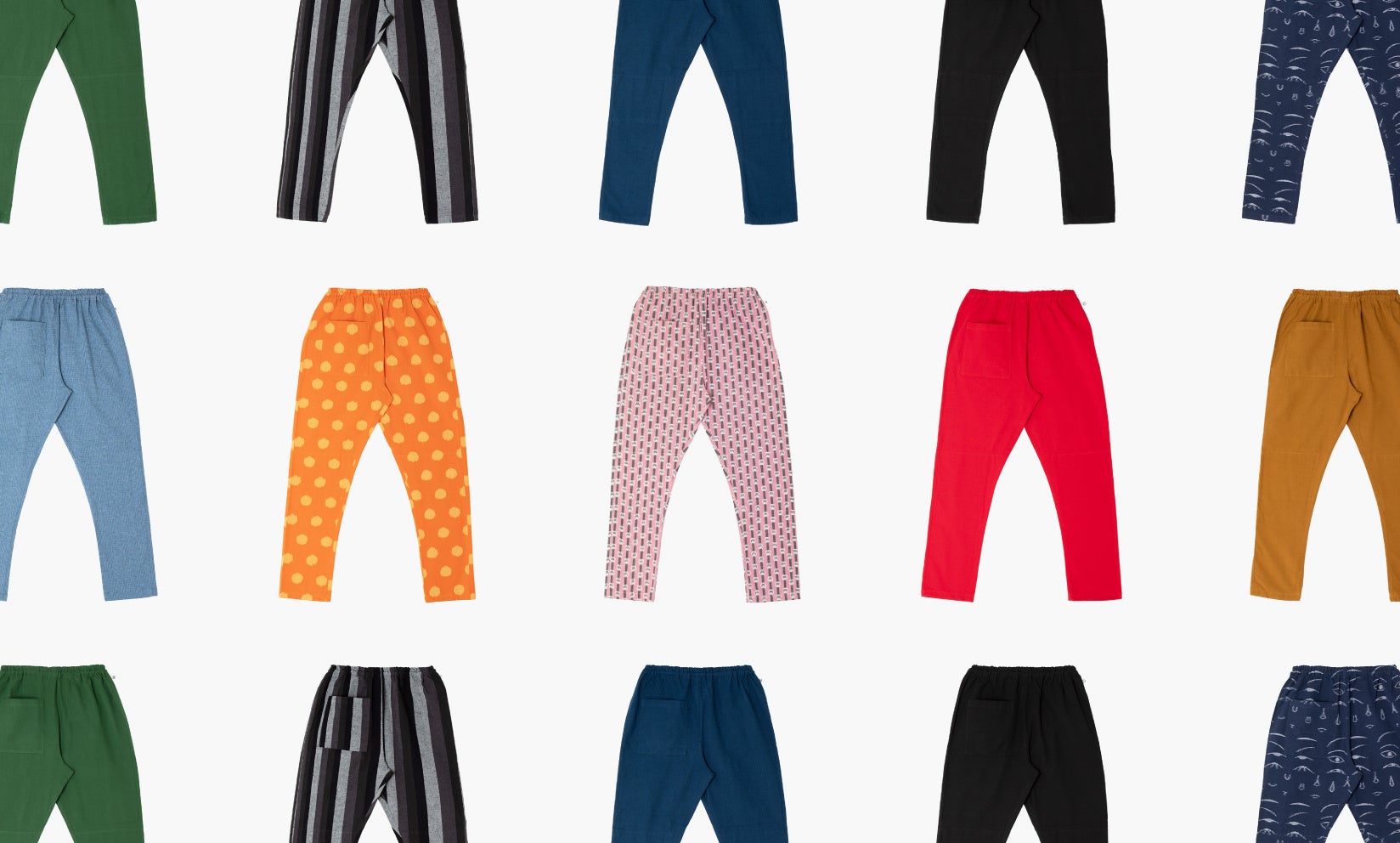久留米絣だけではなく、日本三大絣のひとつである備後絣や、備後絣から発展した福山デニムをはじめとした日本各地の染織物産地のもんぺ、約300本を展示販売をいたします。また、福岡県八女市や愛媛県大洲市で「地域文化商社」として活動しているうなぎの寝床の店舗も感じていただけるよう、全国の地域の作り手の商品も一部展示販売いたします。