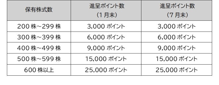 【進呈条件】毎年1月末日、7月末日の株主名簿に記載された200株以上保有する株主様を対象といた