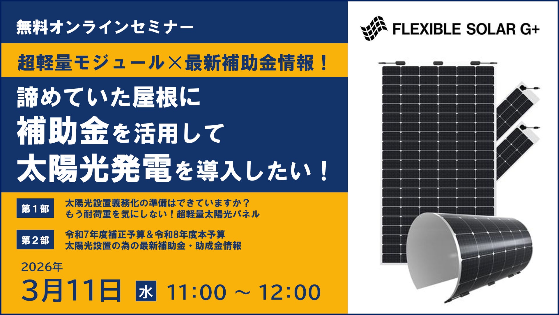 【無料オンラインセミナー開催】 超軽量モジュール×最新補助金情報!諦めていた屋根に、補助金を活用して太陽光発電を導入したい!