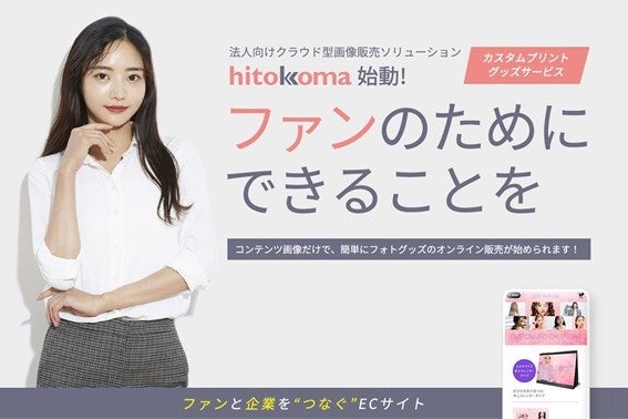 展示でご紹介するサービス「hitokoma(ひとこま)」は、アニメキャラ・スポーツ選手などコンテンツ画像をお持ちのライセンサー様と提携。ライセンサー様はひとこまグッズECサイトにてグッズ販売ができるサービスです。