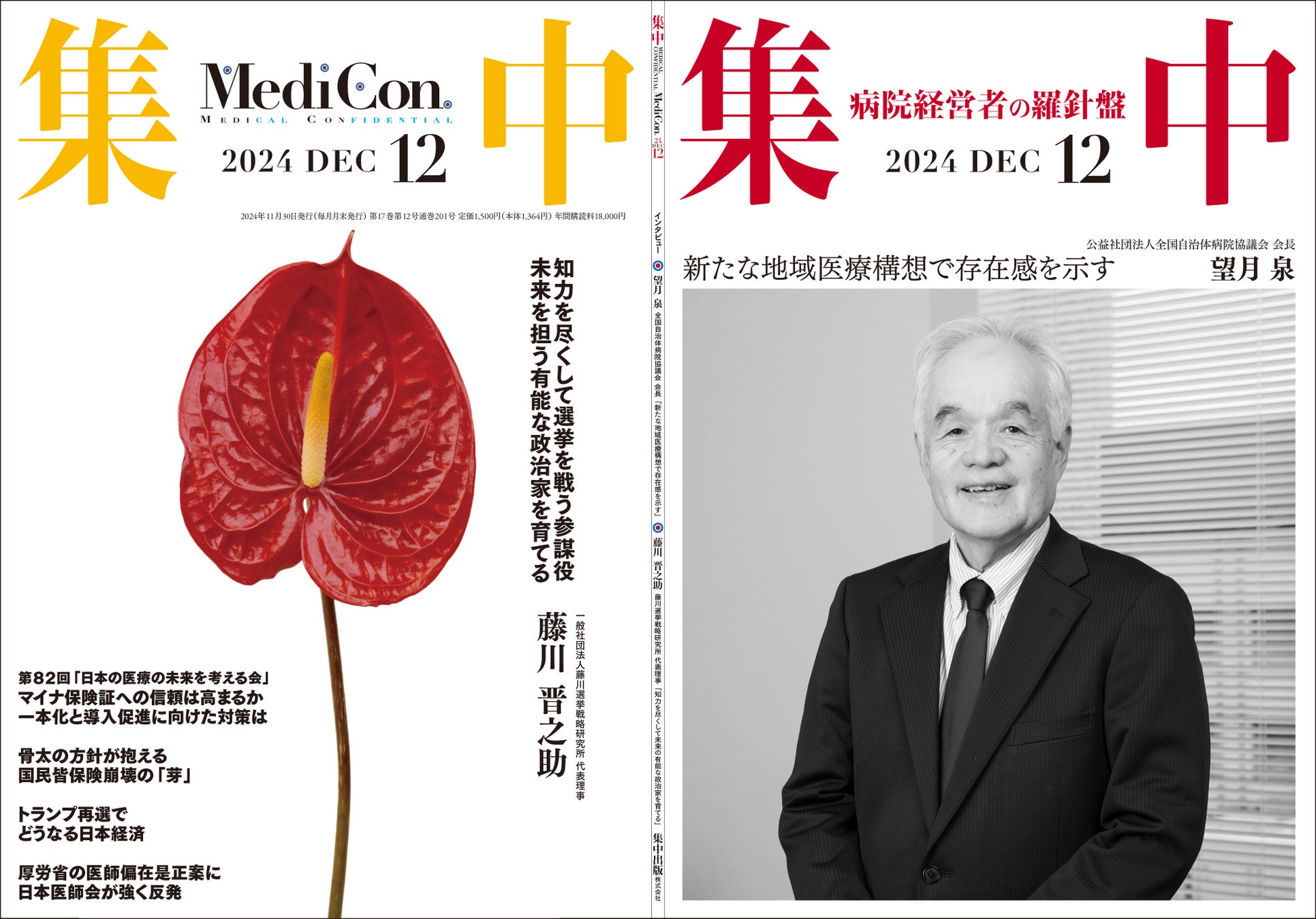 2008年創刊の医療情報誌・月刊『集中』(B5/毎月1日・50,000部発行)は、病院経営者や医師の為の情報誌として、厚生行政、医薬品、医療機器企業の動向等、病院の経営に役立つ医療情報を提供しています。また弊社は、日本の医療が抱える諸問題について毎月テーマを挙げ、国会議員団・医療機関経営者・医療関連企業の幹部の皆様が集い、情報交換をする定例勉強会「日本の医療の未来を考える会」を主催しています(医療従事者は参加費無料/2024年1月現在登録者約2,000名)。