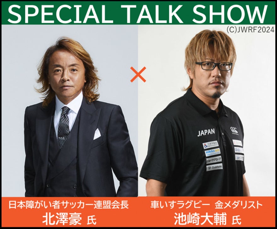 日本障がい者サッカー連盟会長で元サッカー日本代表の北澤豪氏と車いすラグビーパリ2024パラリンピック金メダリスト池崎大輔氏によるスペシャルトークショーです。