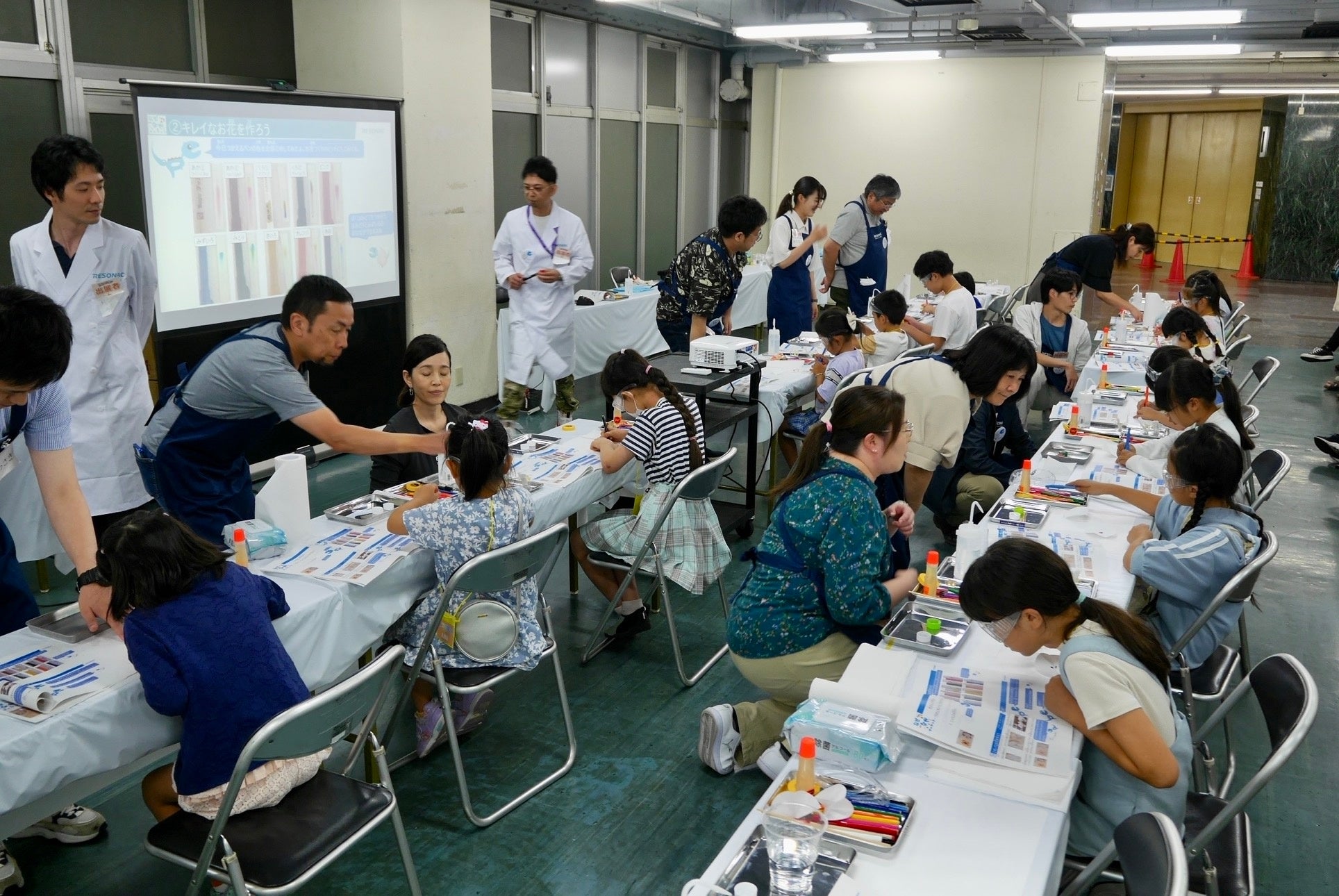 当社グループは次世代育成に向けた活動の一環として、20年以上にわたりこの「夏休み子ども化学実験ショー」に連続して出展しています。また、当イベントに加えて国内の各拠点においても、子ども向けの出前授業や化学実験教室、工場見学などを実施しているほか、夏休みの自由研究の参考になる「おうちでできる化学実験」を当社ウェブサイトで紹介しています。