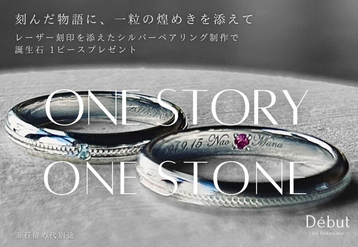 今回のイベントテーマは『ONE STORY ONE STONE』。 記念日や名前を刻む「レーザー刻印」は、お二人だけの物語(STORY)を形にする工程です。そこに、お守りとしての意味を持つ誕生石(STONE)を添えることで、より深く、一生の記憶に残る指輪にしていただきたいという想いから本キャンペーンを企画いたしました。
