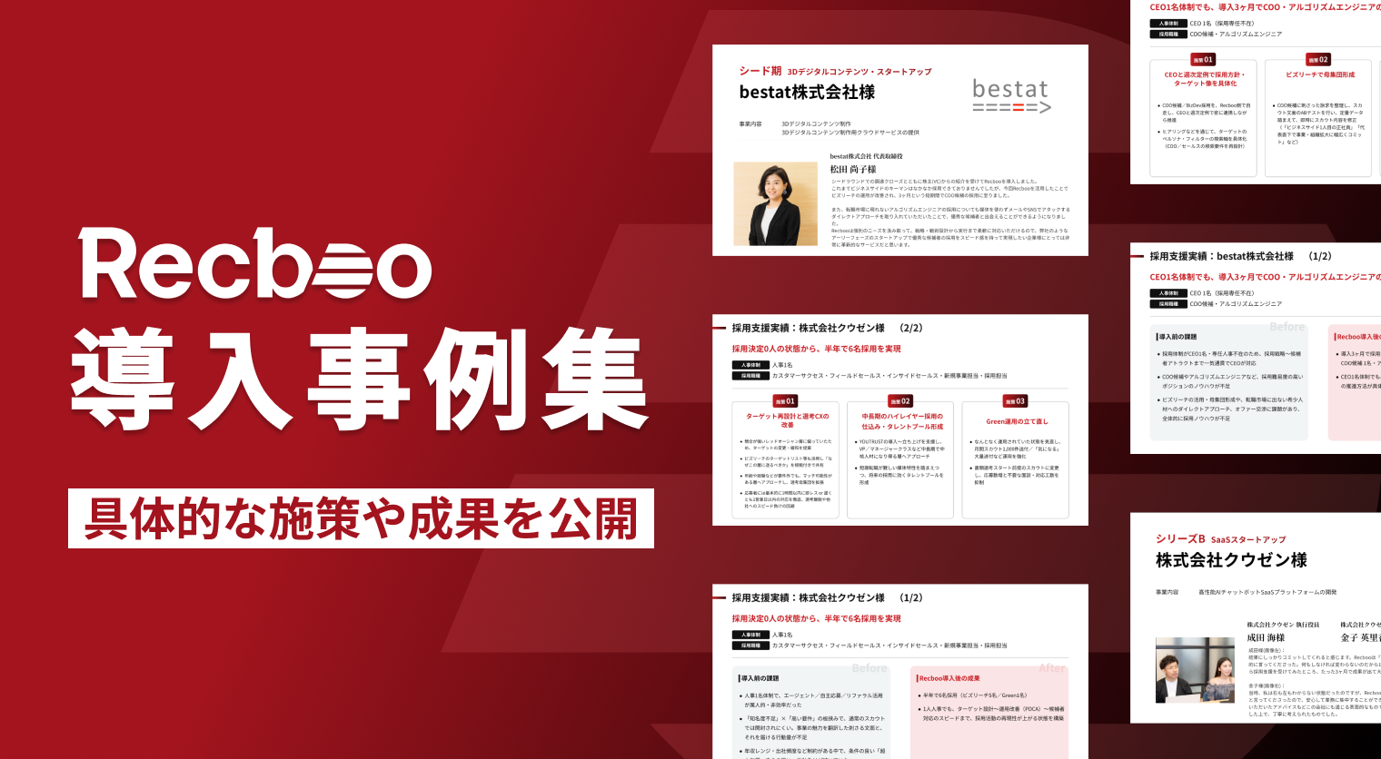 【Recboo】CEO1名体制でのCOO採用や生成AIエンジニア/PMなど、難易度の高い採用を実現してきた「最新採用支援事例集」を公開