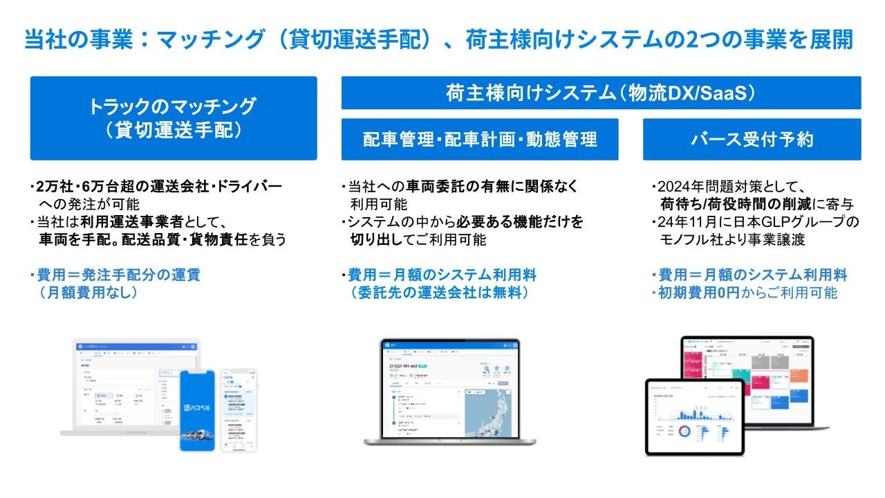 事業内容:運送手配マッチングサービス、物流DXサービスを展開する物流プラットフォーム事業