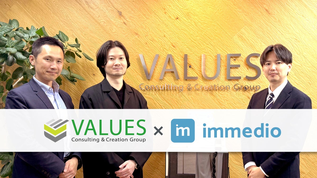 株式会社immedio(本社:東京都港区、代表取締役:浜田 英揮、以下 immedio)は、提供するBtoB Web接客ツール「immedio(イメディオ)」が、インターネット行動ログ分析によるマーケティング調査・コンサルティングサービスを提供する株式会社ヴァリューズ(本社:東京都港区、代表取締役社長:辻本 秀幸、以下 ヴァリューズ)に、導入されたことをお知らせします。
