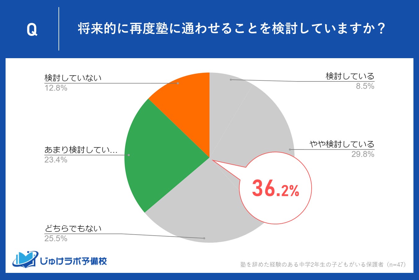 一方で約36%の保護者が再度塾に行かせる事を検討していないと回答