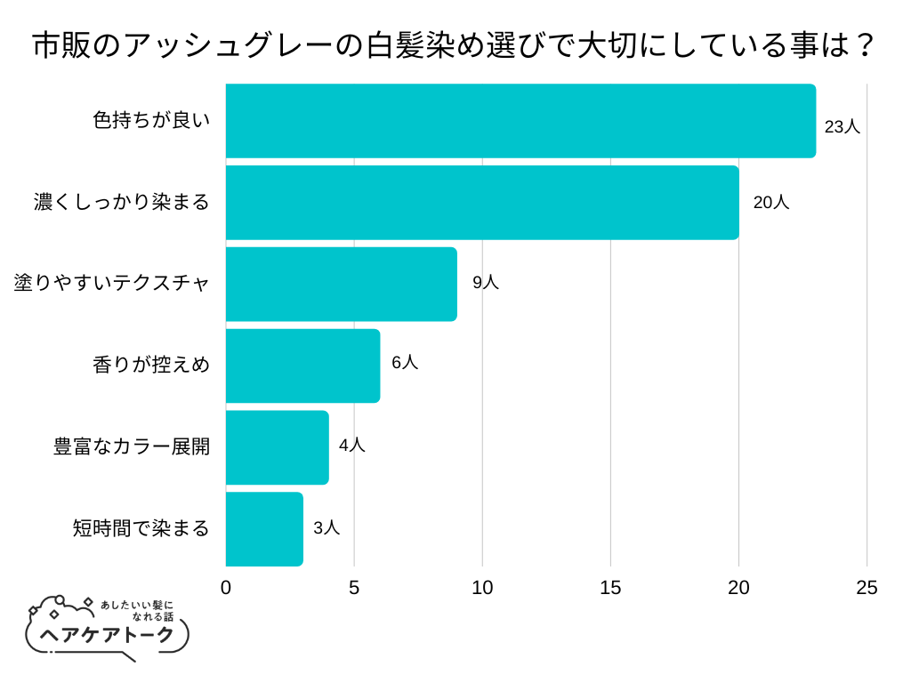 【調査レポート】市販のアッシュグレーの白髪染め選びで大切にしている事は?1位は「色持ちが良い」でした!