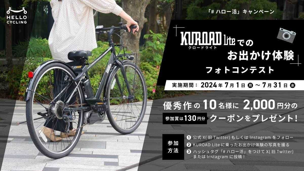 OpenStreet株式会社(本社:東京都港区、代表取締役社長CEO:工藤 智彰、以下「OpenStreet」)は、「HELLO CYCLING」公式XとInstagramで、毎月のテーマに沿った「HELLO CYCLING」の活用方法をユーザーの皆さまに投稿していただくSNSキャンペーン「#ハロー活」を、2024年7月1日から2025年3月まで毎月開催することをお知らせします。第一弾となる2024年7月1日からのテーマは、スポーツタイプの電動アシスト自転車「KUROAD Lite(クロードライト)」のお出かけ体験です。