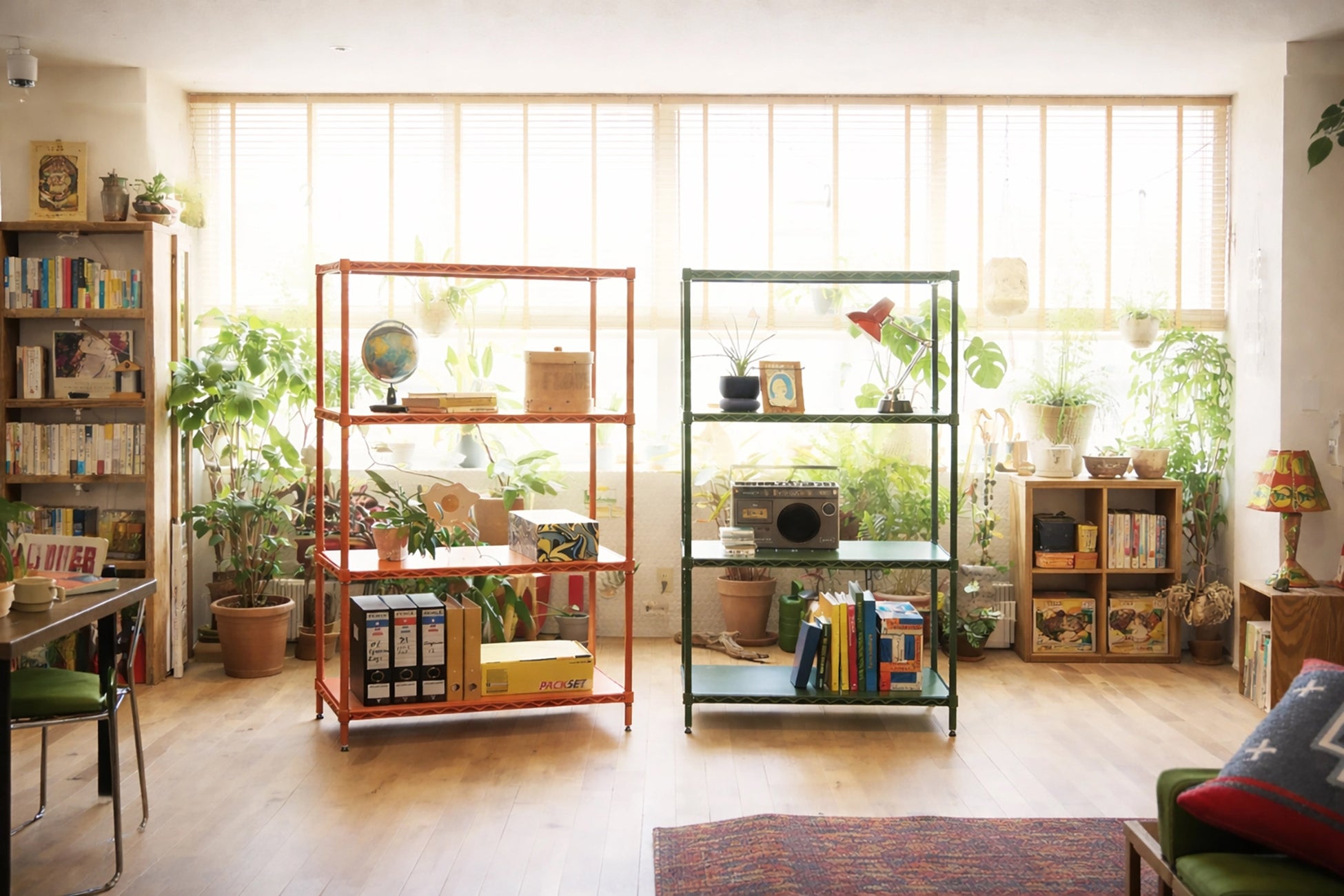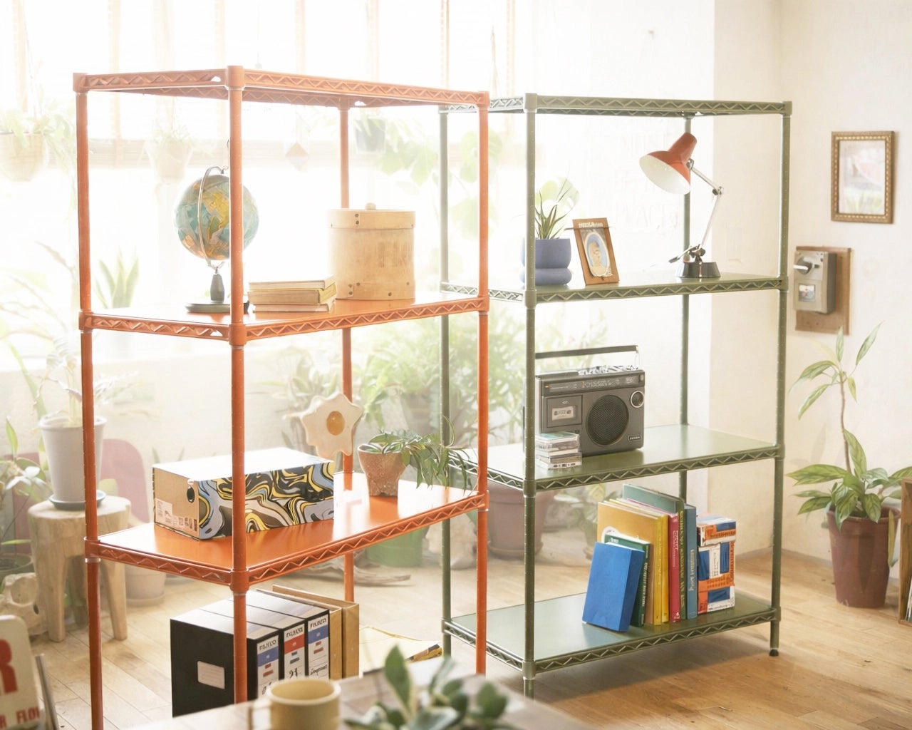 エレクターシェルフ ベーシックシリーズの「フラットシェルフ」と「ワイヤーシェルフ」に、限定カラー登場 ― 空間を彩る新色2色を数量限定で発売!