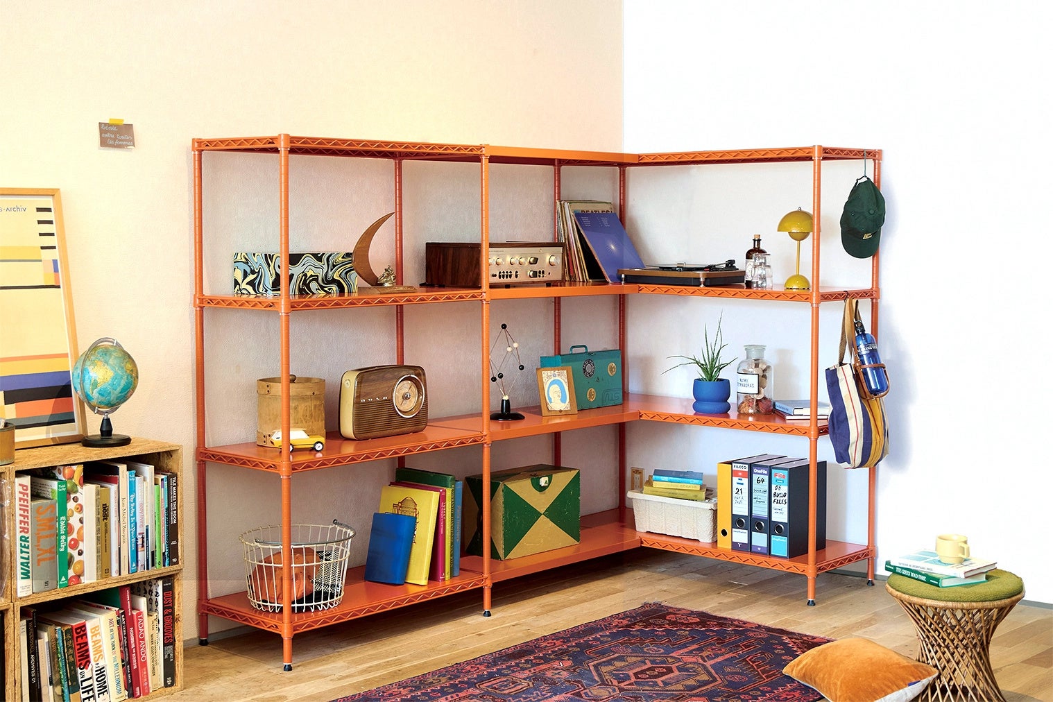 「エレクターシェルフ ベーシックシリーズ」は、エレクターの特長である耐久性と拡張性を兼ね備えたスチールラックです。