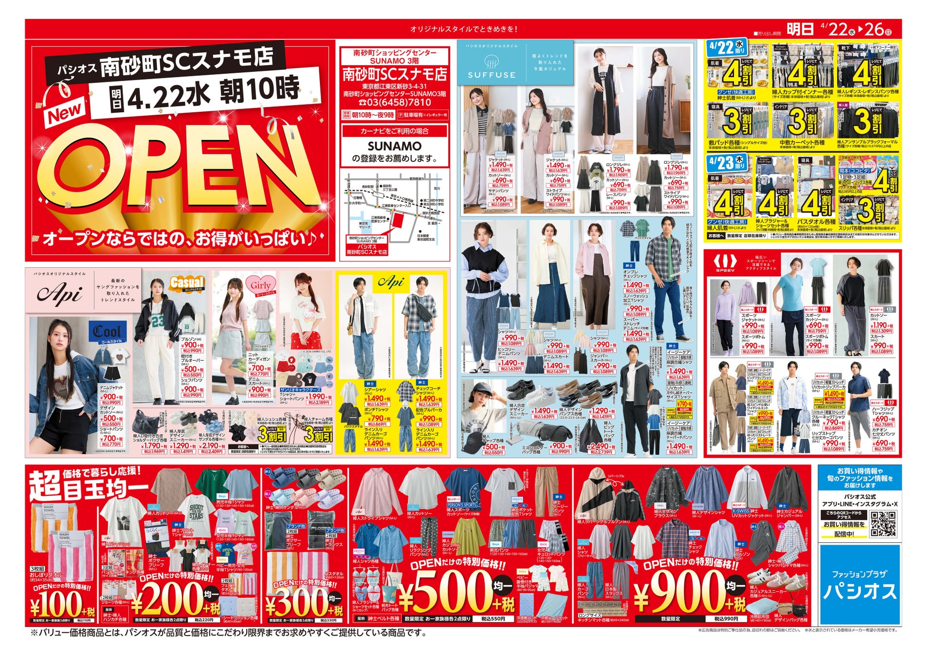 【新店】4/22(水)南砂町ショッピングセンターSUNAMOにファッションプラザ【パシオス】が新店をオープン