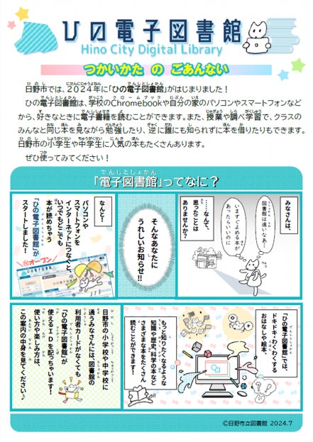 今後、日野市立図書館では利用許諾の確認を進め、子ども向けの電子資料を充実させてまいります。また、生活に役立つ一般向け電子資料についても提供の準備を進め、より市民のくらしに寄り添う電子図書館を目指します。