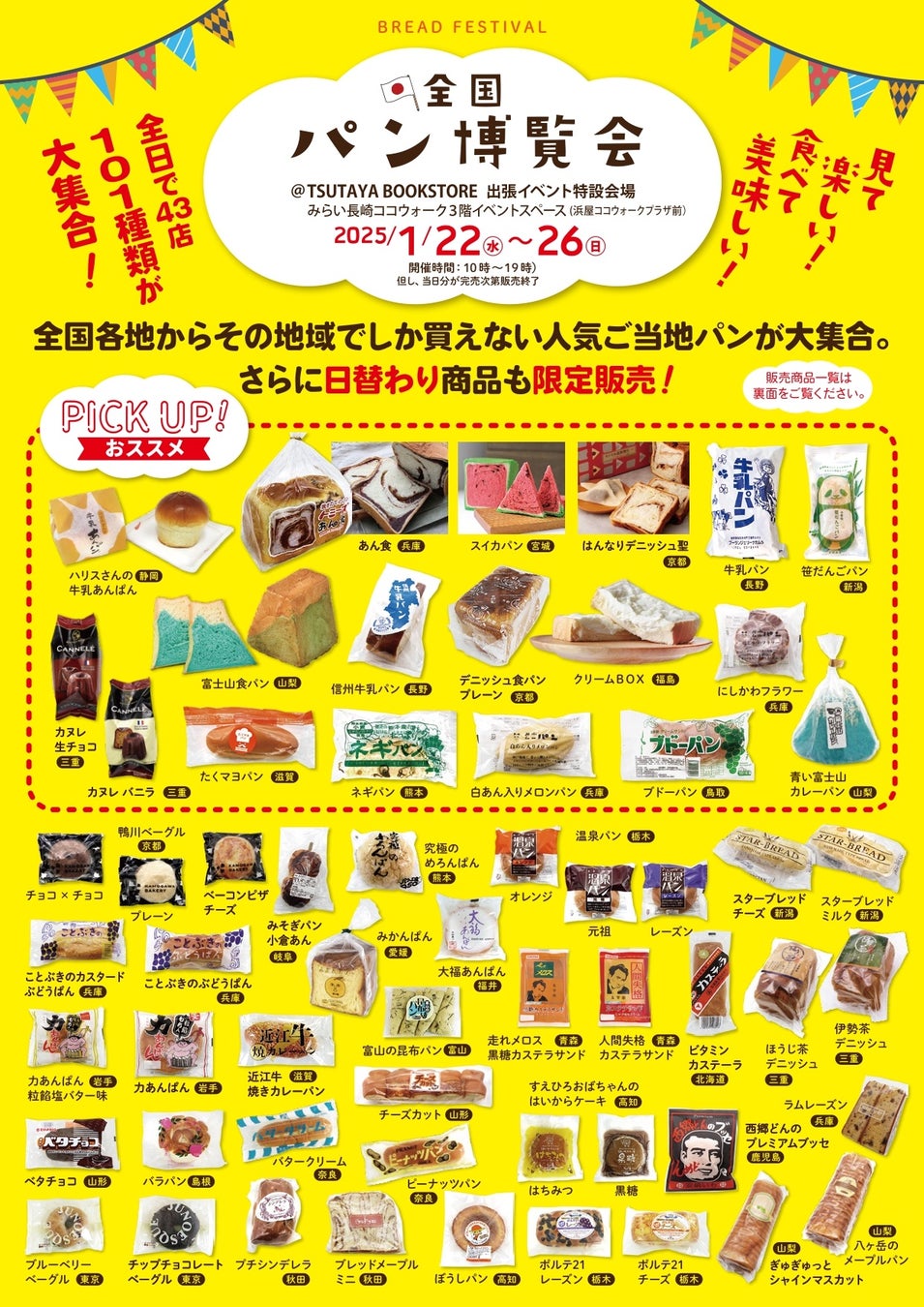 全国各地のご当地パンが集結するイベント『全国パン博覧会』を香川・長崎・鹿児島のTSUTAYA BOOKSTORE等で1月15日より順次開催