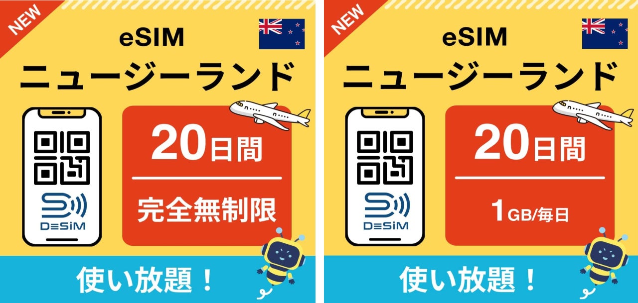 DeSiMがニュージーランドeSIM20日間プランがAmazonで販売開始。観光や留学、長期滞在者に最適な選べるeSIMプラン!