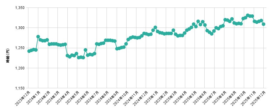全国アルバイト・パート平均時給は「1,309円」【2025年12月度 アルバイト・パート 平均時給・求人数レポート】